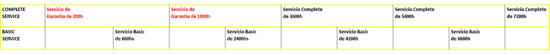 El servicio programado se divide entre los Servicios Básico y Completo. Se recomienda el servicio Complete al menos una vez al año incluso si no se alcanza el límite de horas de funcionamiento.